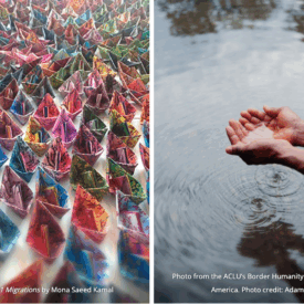 Our inaugural exhibit, “Migration Stories,” opened on 4/26/25 and was on view through 6/21/25. We featured an installation piece by the artist Mona Saeed Kamal, titled 1001 Migrations. This evocative work is composed of 1001 delicate paper boats folded out of hand painted paper.The installation is complemented by material from the ACLU’s Border Read More