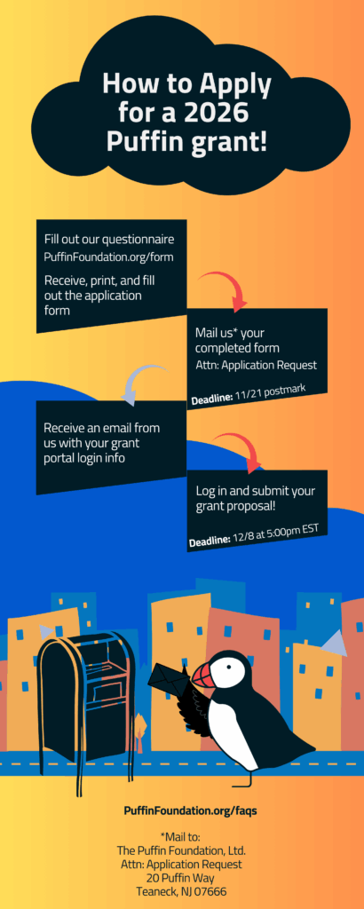 One of Puffin’s funding goals is to reach as many grantees as possible. Therefore, each applicant is limited to one proposal in any given year.
