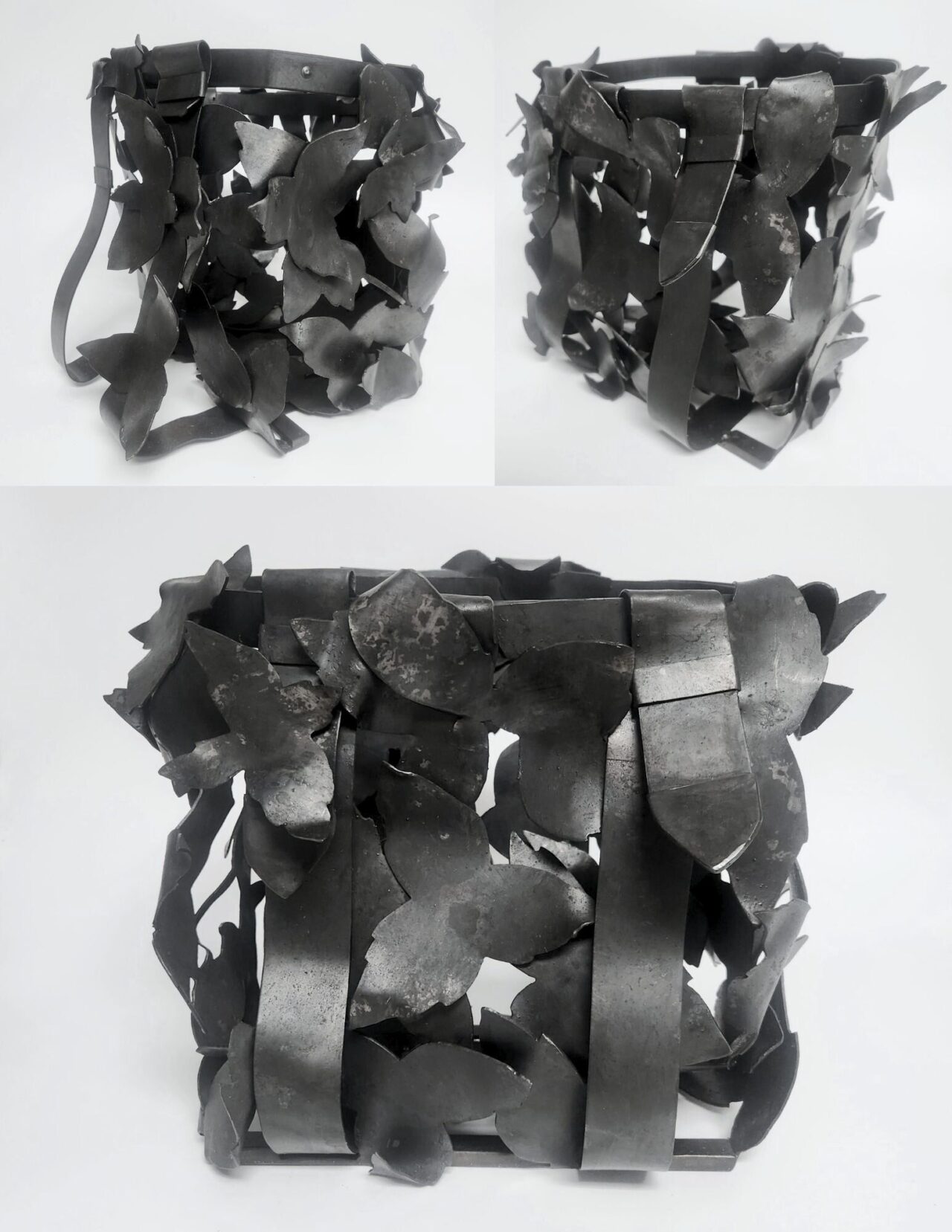 In this work, I am exploring the environmental impact of the Emerald Ash Borer on the ash tree. Ash trees have significant meaning to my ancestral homelands of the Akwesasne Mohawk Nation. My community is a basket weaving culture and depends on the ash tree to create and continue this cultural art form. As the Emerald Ash borer becomes more invasive in the local environment and our trees are quickly being taken, the potential loss of this traditional form of making has been at the forefront of my mind. By using metal instead of traditional ash, this work gives me the chance to recontextualize and examine the material and its associations in contemporary, Haudenosaunee artwork as well as create a conversation about loss, adaptability and resiliency within Indigenous communities.