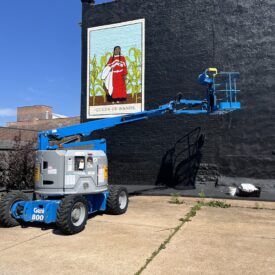 Queen of Wands is a site-specific public mural painted in Midtown St. Louis in 2024. Adapted from the artist’s ongoing The Confluence Tarot series, the mural centers Indigeneity, healing, and resilience through bold color, botanical imagery, and spiritual symbolism. Read More