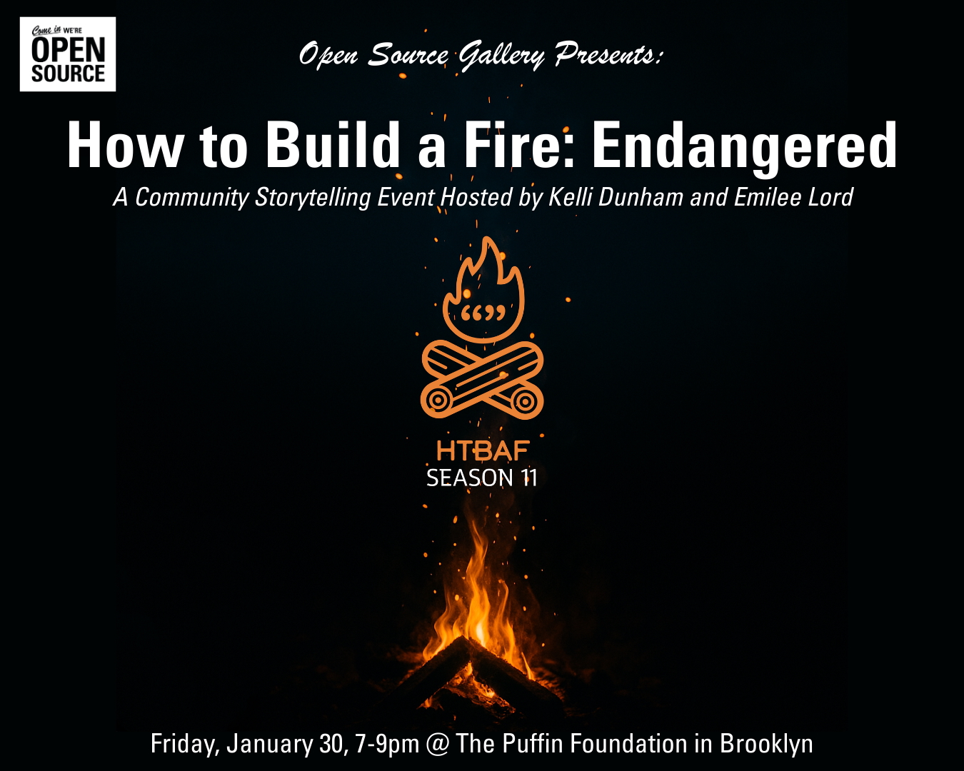 On January 30th, Puffin Brooklyn and Open Source Gallery presented How to Build a Fire: Endangered. Four community members shared stories about things that feel at risk: identities, relationships, traditions, ecosystems, languages, jobs, bodies, neighborhoods, or versions of ourselves. These are stories about noticing what’s fragile, what’s being threatened, and what we’re trying to protect before it disappears — or the impact of what changes when something goes extinct.